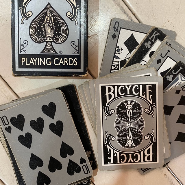 Bicycle playing cards are sold in a variety of designs the most popular being the rider back design. Bicycle is a classic brand of playing cards. The numbers on the cards range form 2 to 10 then proceed onto jack the bicycle trademark is typically printed on the ace of spades.