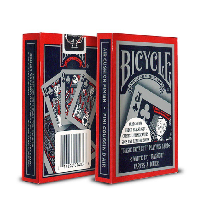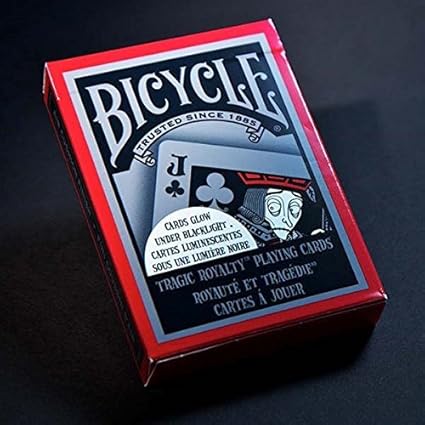 Deskripsi kartu remi import bicycle tragic royalty playing cards the tragic royalty deck is designed with bold black and red backs and whimsical ghoulish court cards. Detailsdo you have a goth side. These bicycle playing cards glow in the dark when used under a.