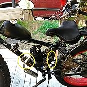 This mount is designed to work with most standard 48cc 60cc 66cc and 80cc 2 stroke motors so the next time you want to build an occ prado delux or any motorized chopper bike make sure you have this offset chopper mount handy. Motorized bicycle offset wide frame chopper mount kit 6mm. Only no carb no muffleretc.